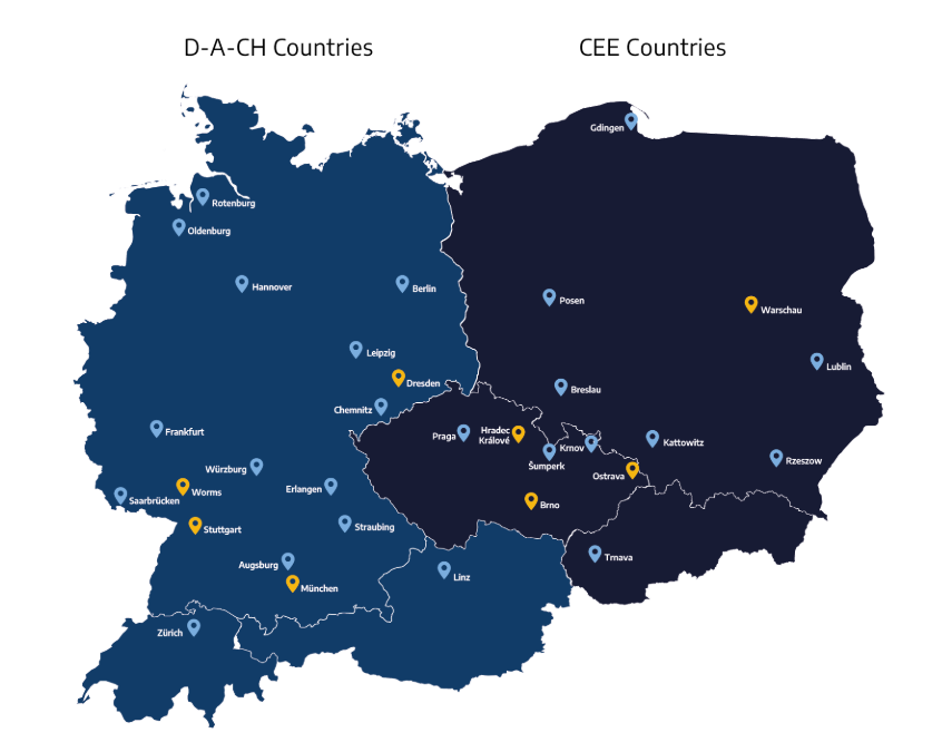 The companies of the NTR Group have a total of 30 locations. The main offices for Germany are located in Munich, Worms and Dresden.
